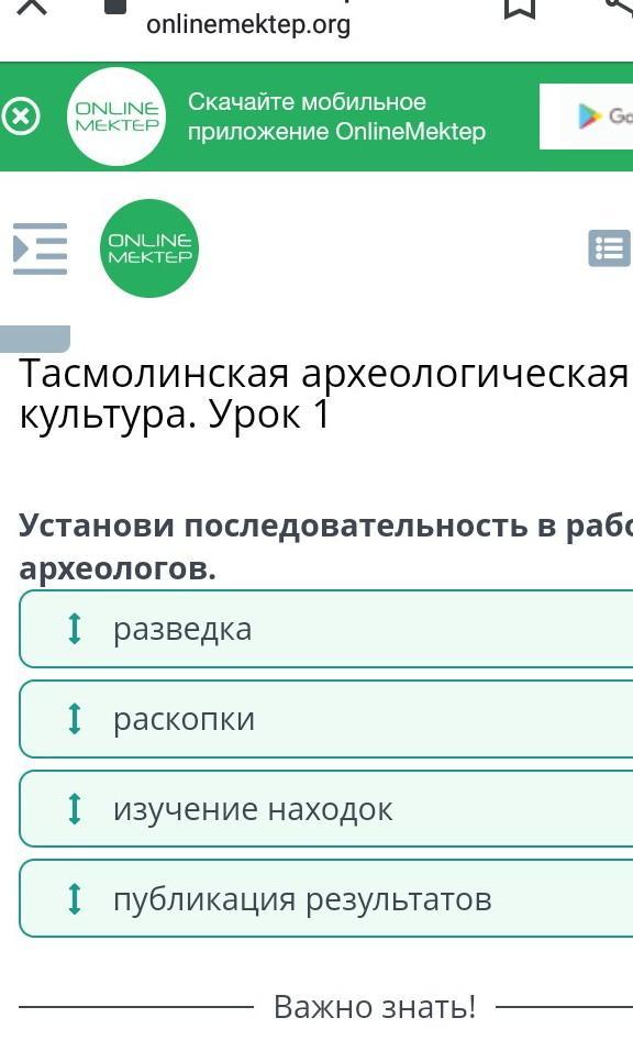 Установи последовательность в работе археологов. разведка раскопки публикация результатов изучение находок Назад Проверить