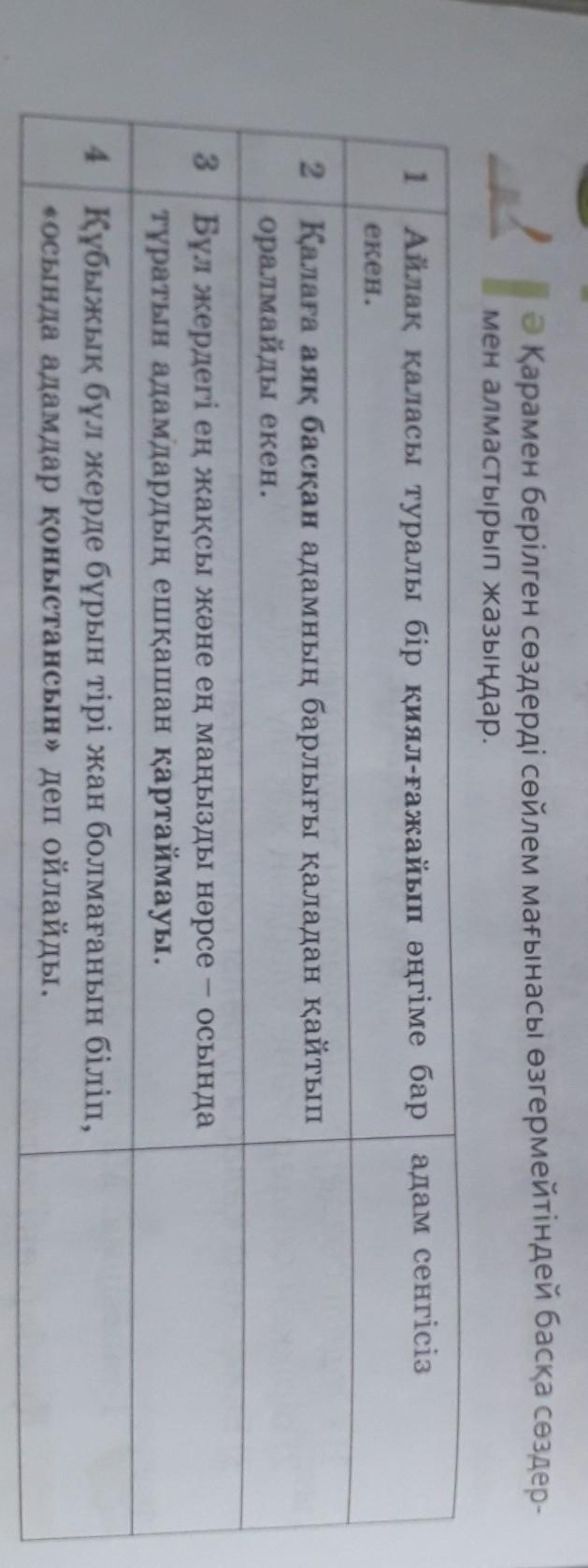ə Қарамен берілген сөздерді сөйлем мағынасы өзгермейтіндей сасқа сөздер-