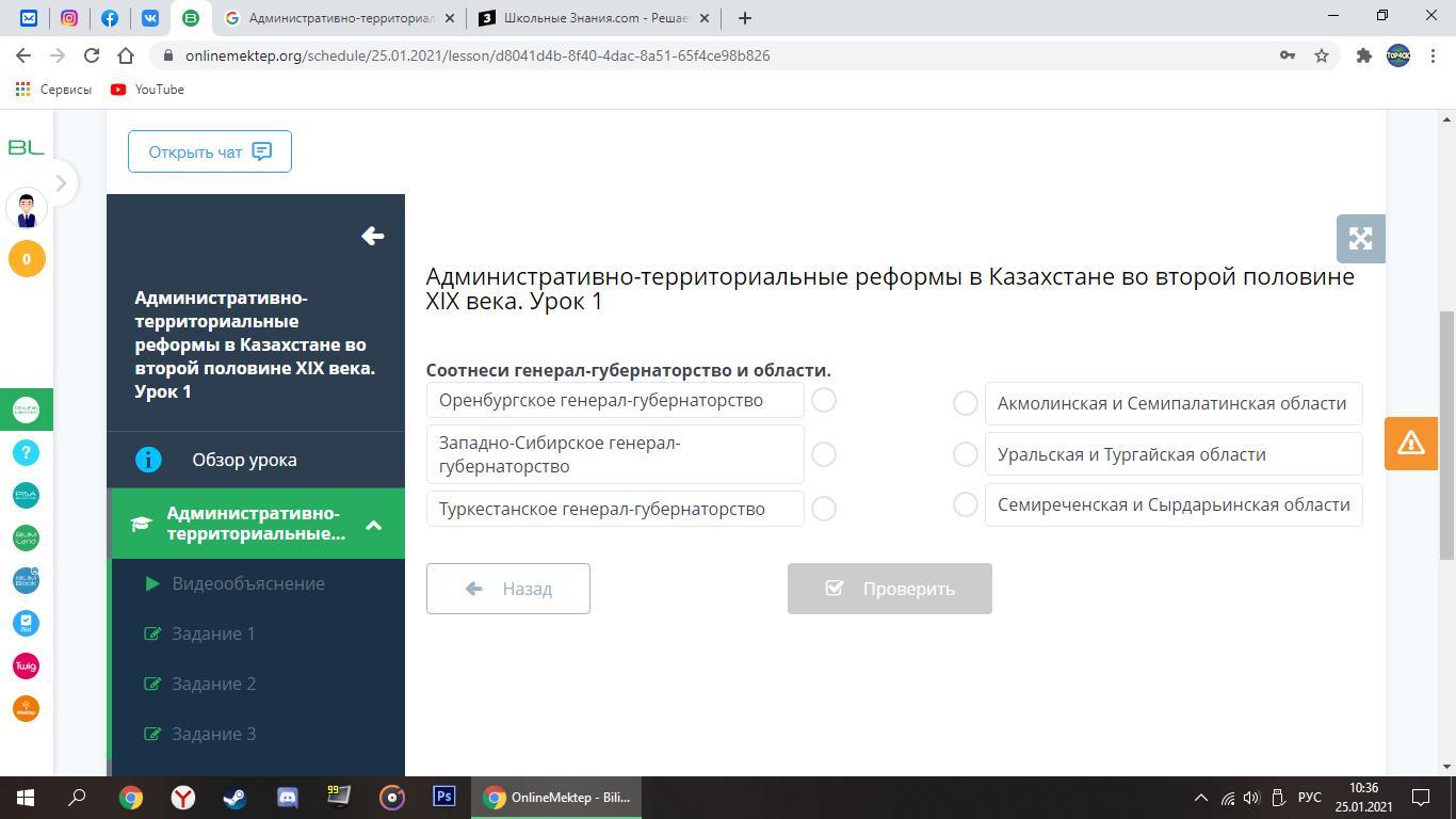 Административно-территориальные реформы в Казахстане во второй половине ХIХ века. Урок 1 Соотнеси генерал губернатство и области