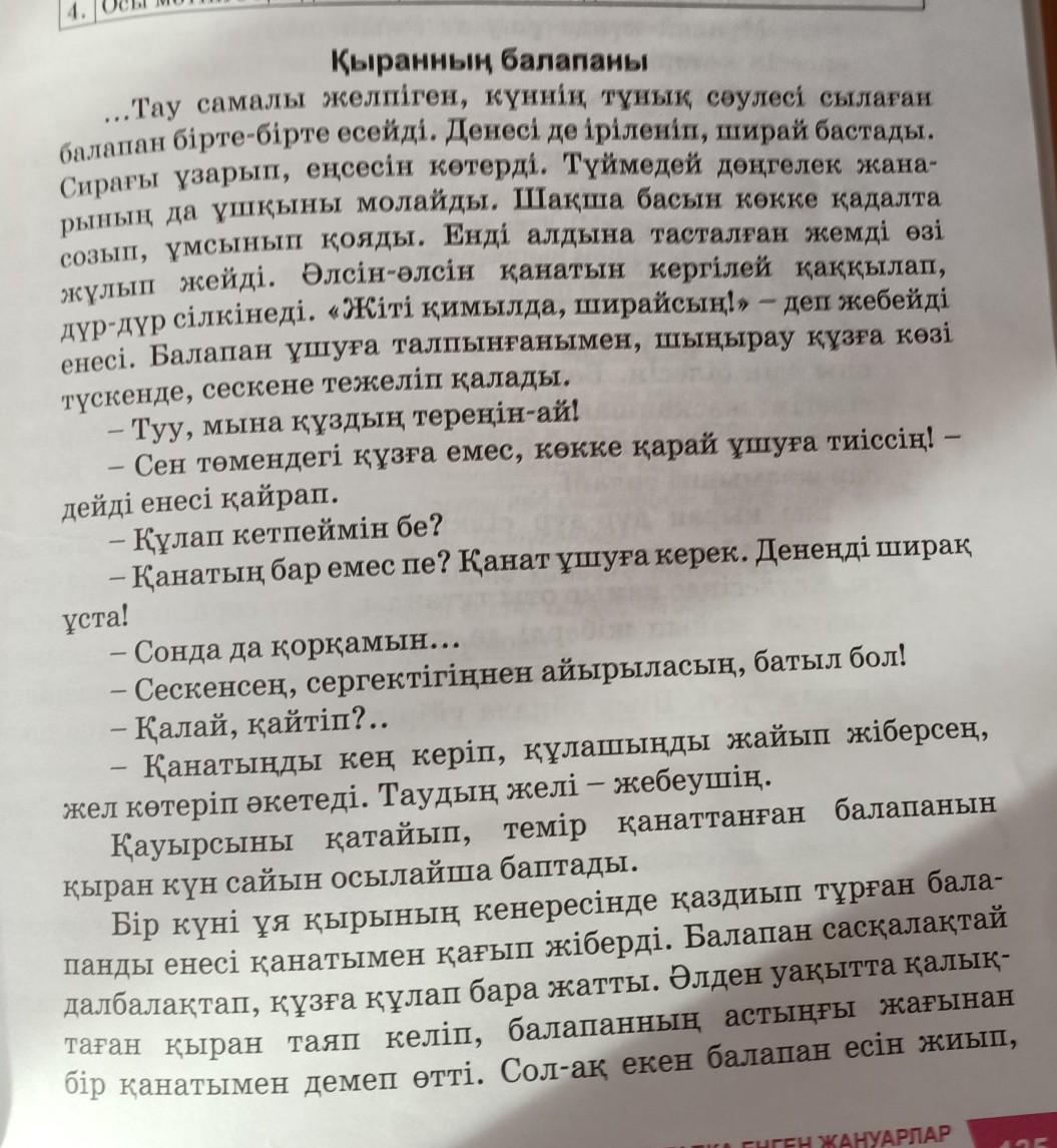 Объяснение:осылай қоюға болады,себебі мәтінде қыранның балапанына деген баптауы мен қанаттандыруы туралы айтылған