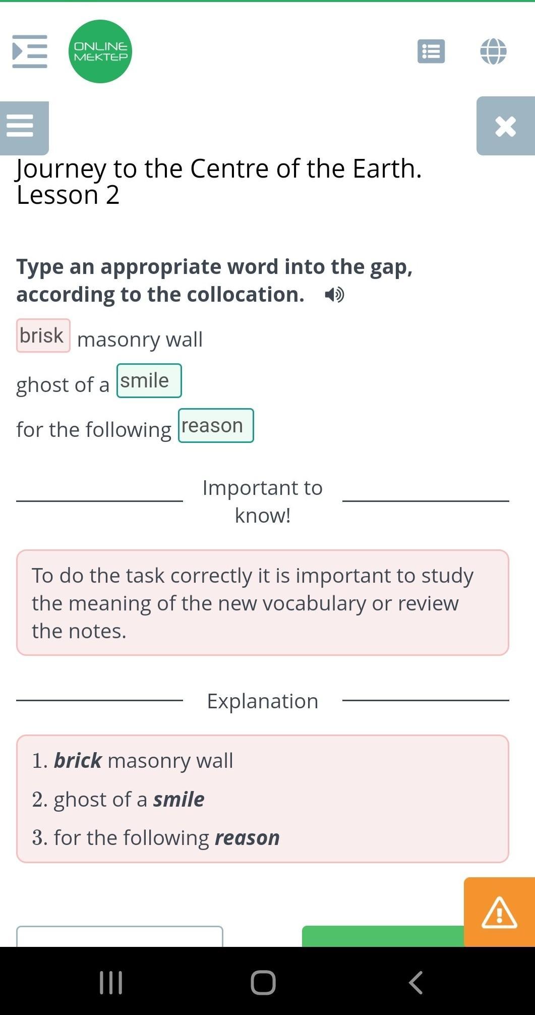 Type an appropriate word into the gap, according to the collocation.