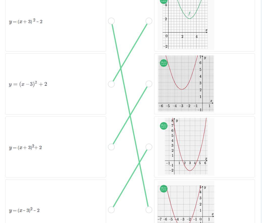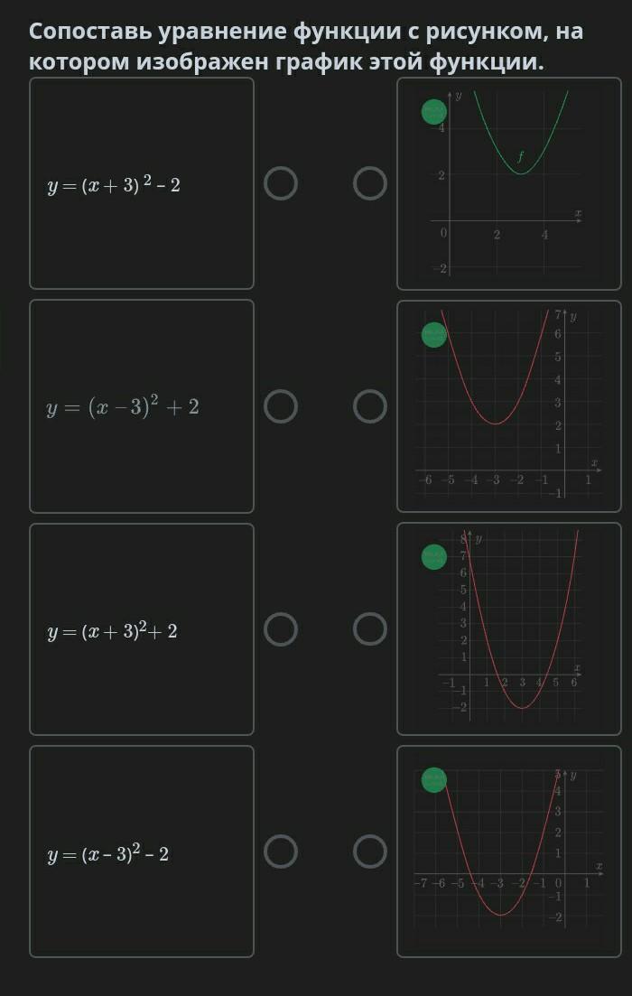 Сопоставь уравнение функции с рисунком, на котором изображен график этой функции.
