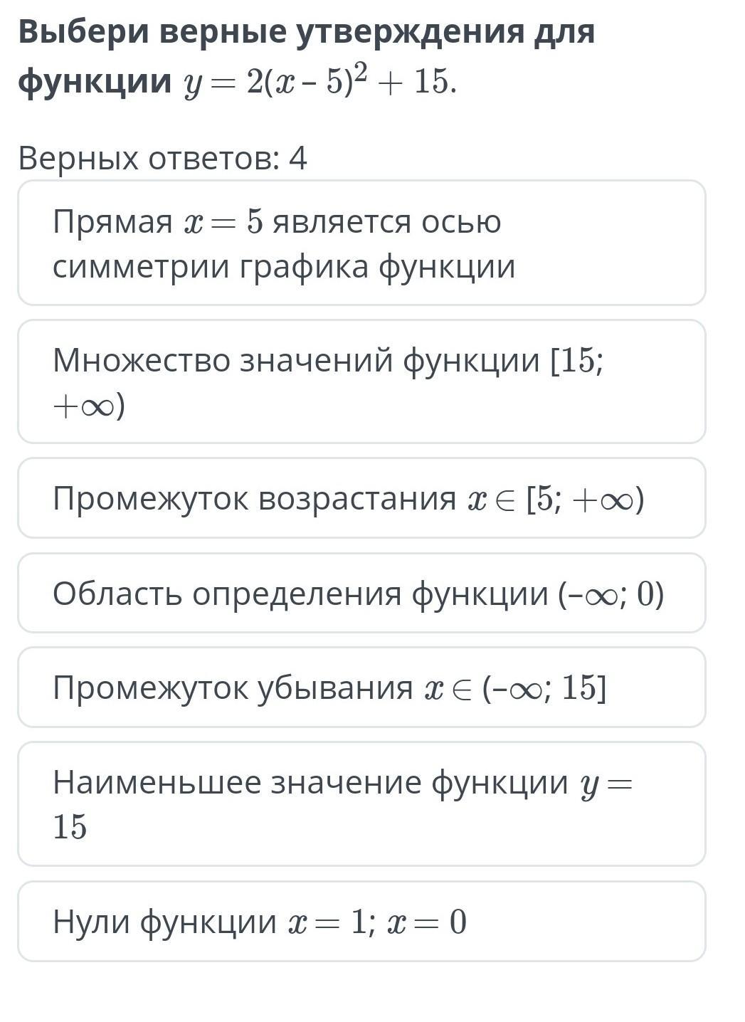 1. Прямая х=5 явл. осью симметрии графика функции .