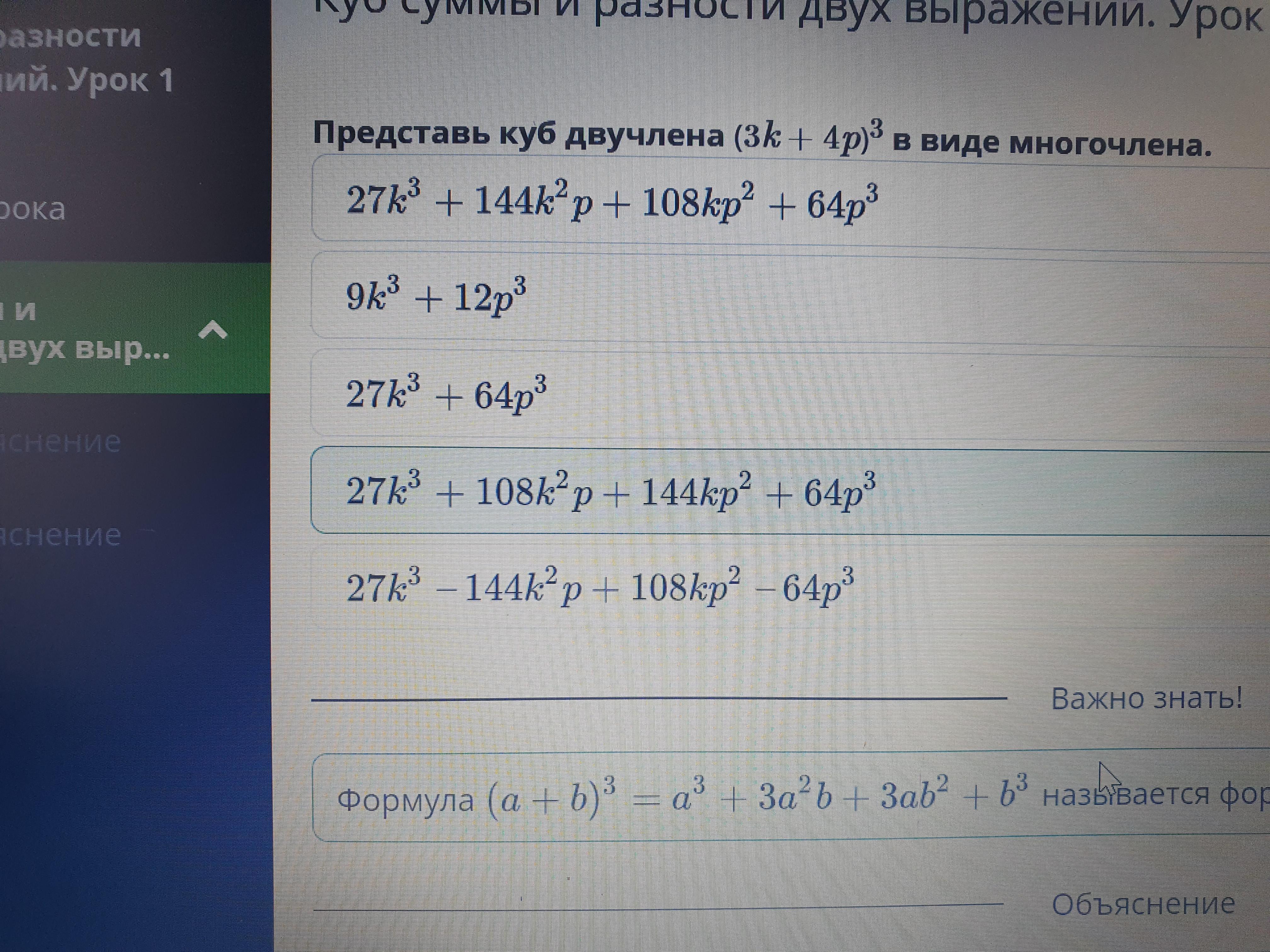 (3s^2+v^3)^3=27s^6+27s^4v^3+9s^2v^6+v^9