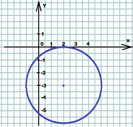 Окружность имеет радиус R = 3 и центр с координатами (2; -3).