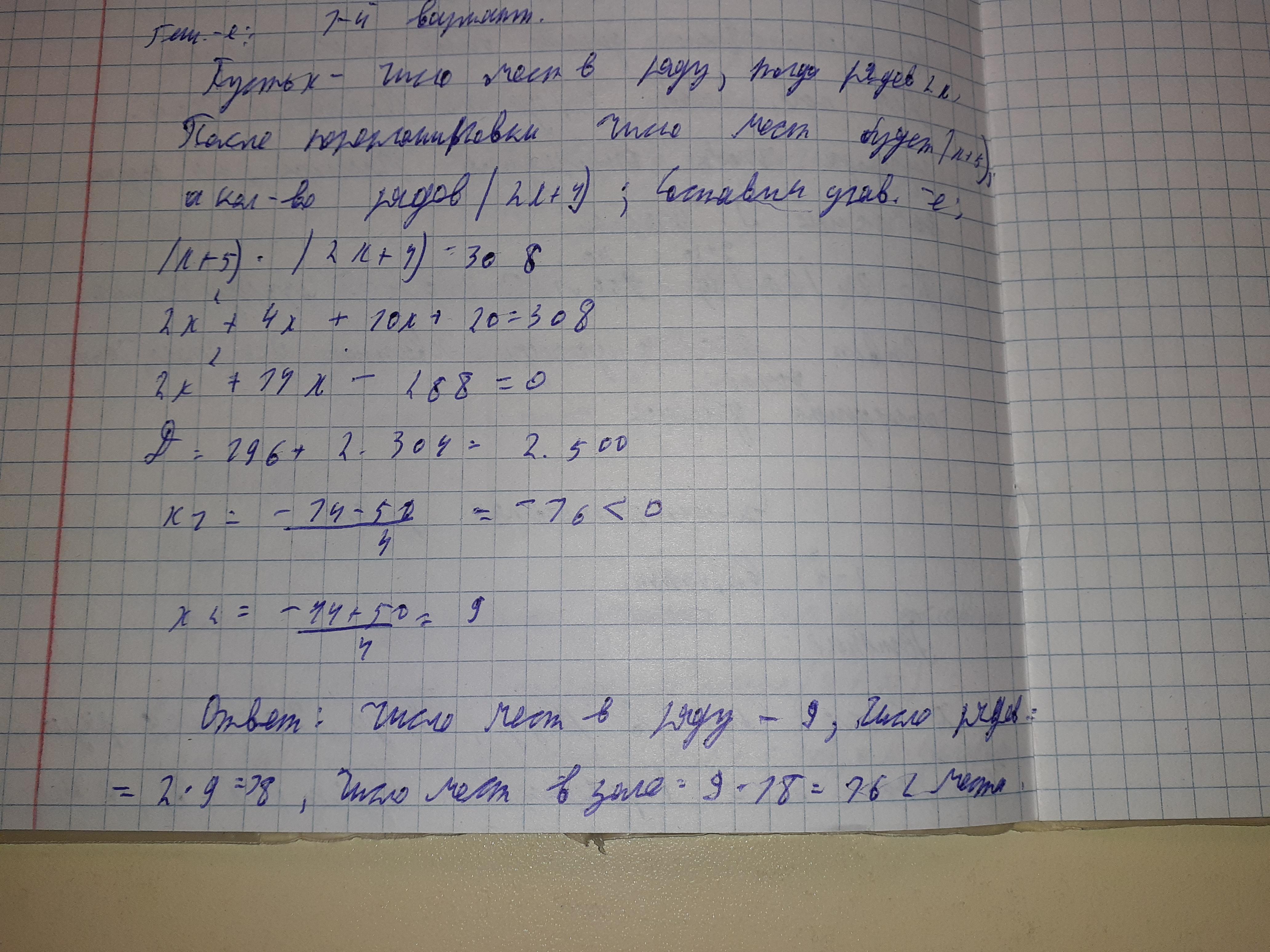 рядов увеличить на 4, а число мест в каждом ряду увеличить на 5, то число мест в зале будет