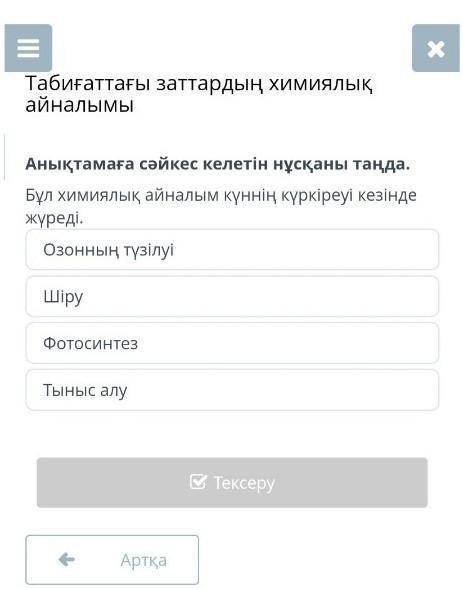 Ответ:менің ойымша озонның түзілуі. Дурыс болмаса кешірім сұраймын
