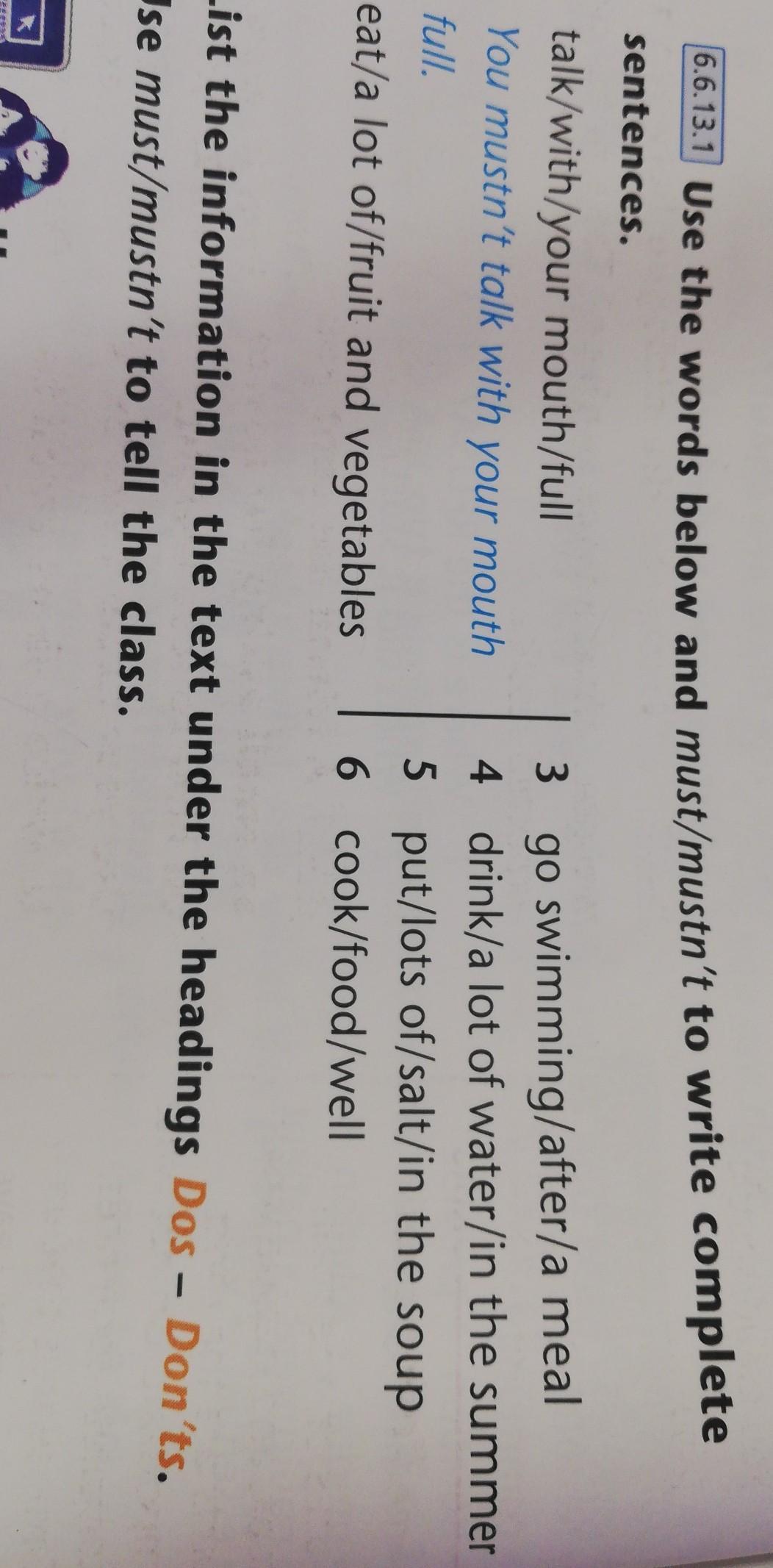 3 You mustn't go swimming after a meal.