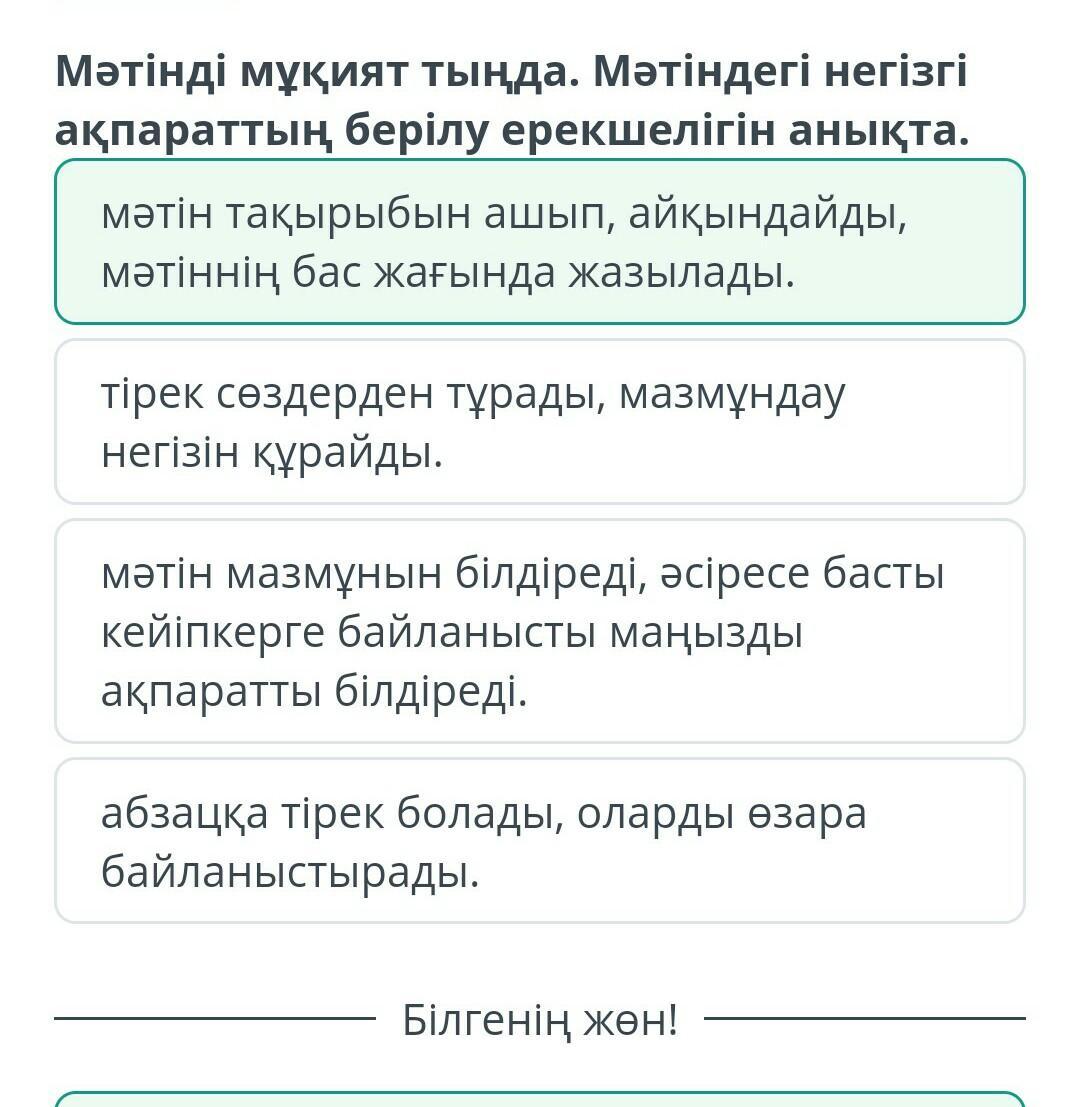 Мәтіндегі негізгі ақпараттың берілу ерекшелігін анықта.