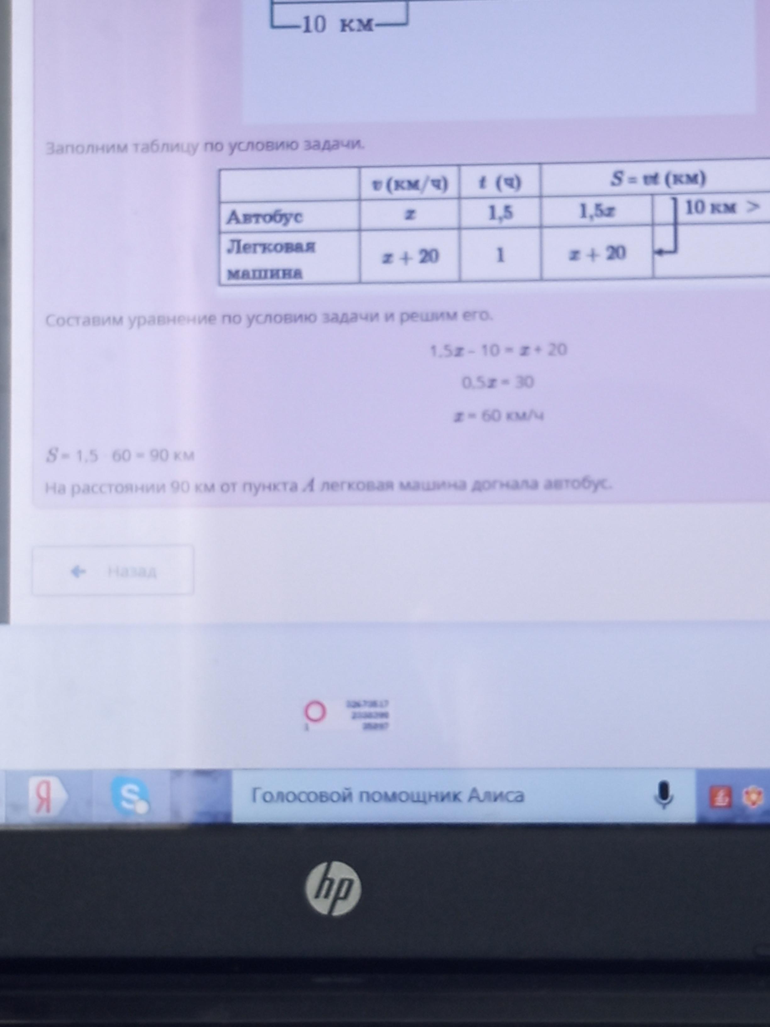 Автобус отправился в сторону пункта B, расположенного в 10 км от пункта A. Спустя 30 минут, за автобусом выехала легковая машина из пункта B. Она проехала 1 час на скорости, превышающей скорость автобуса на 20 км/ч, и догнала автобус. Определи, на каком расстоянии от пункта A легковая машина догнала автобус.