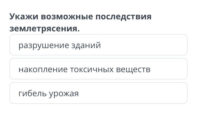 Укажи возможные последствия землетрясения.