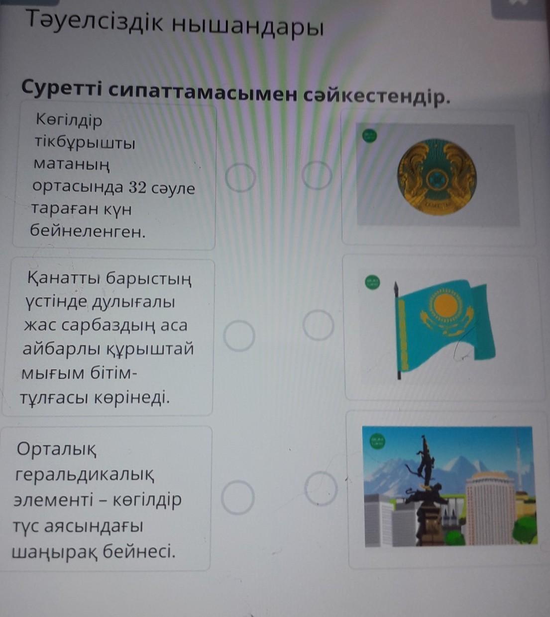 Қанатты барыстың үстінде дулығалы жас сарбаздың аса айбарлы құрыштай мығым бітім- тұлғасы көрінеді---- Тәуелсіздік монументі.