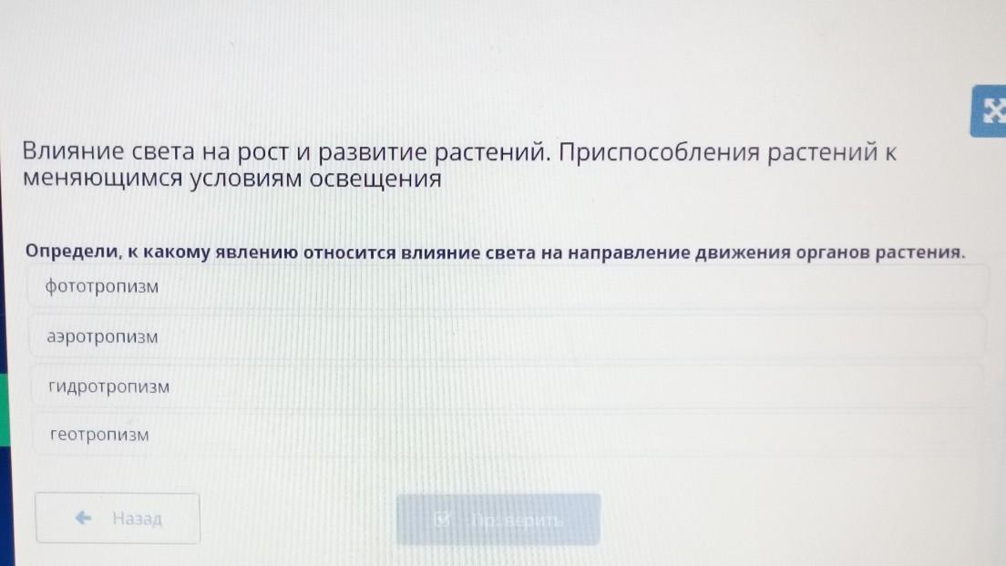 Определи к какому явлению относится явление относится влияние света на направление движения органов растения фототризм аэротропизм гидропотизм