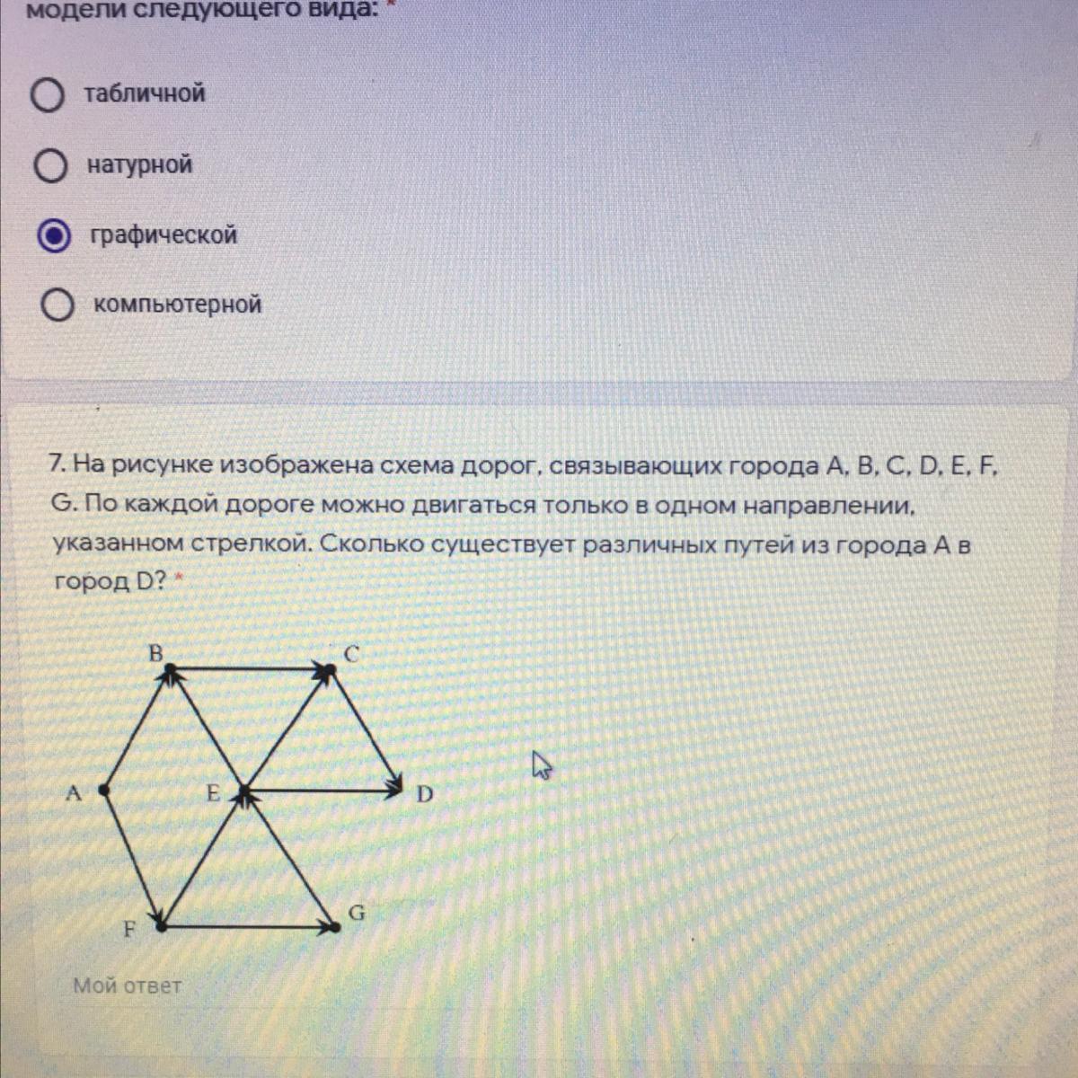 7. На рисунке изображена схема дорог, связывающих города А, В, С, D, Е. Е.