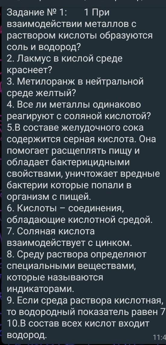 Задание № 1: 1 При взаимодействии металлов с раствором кислоты образуются соль и водород?