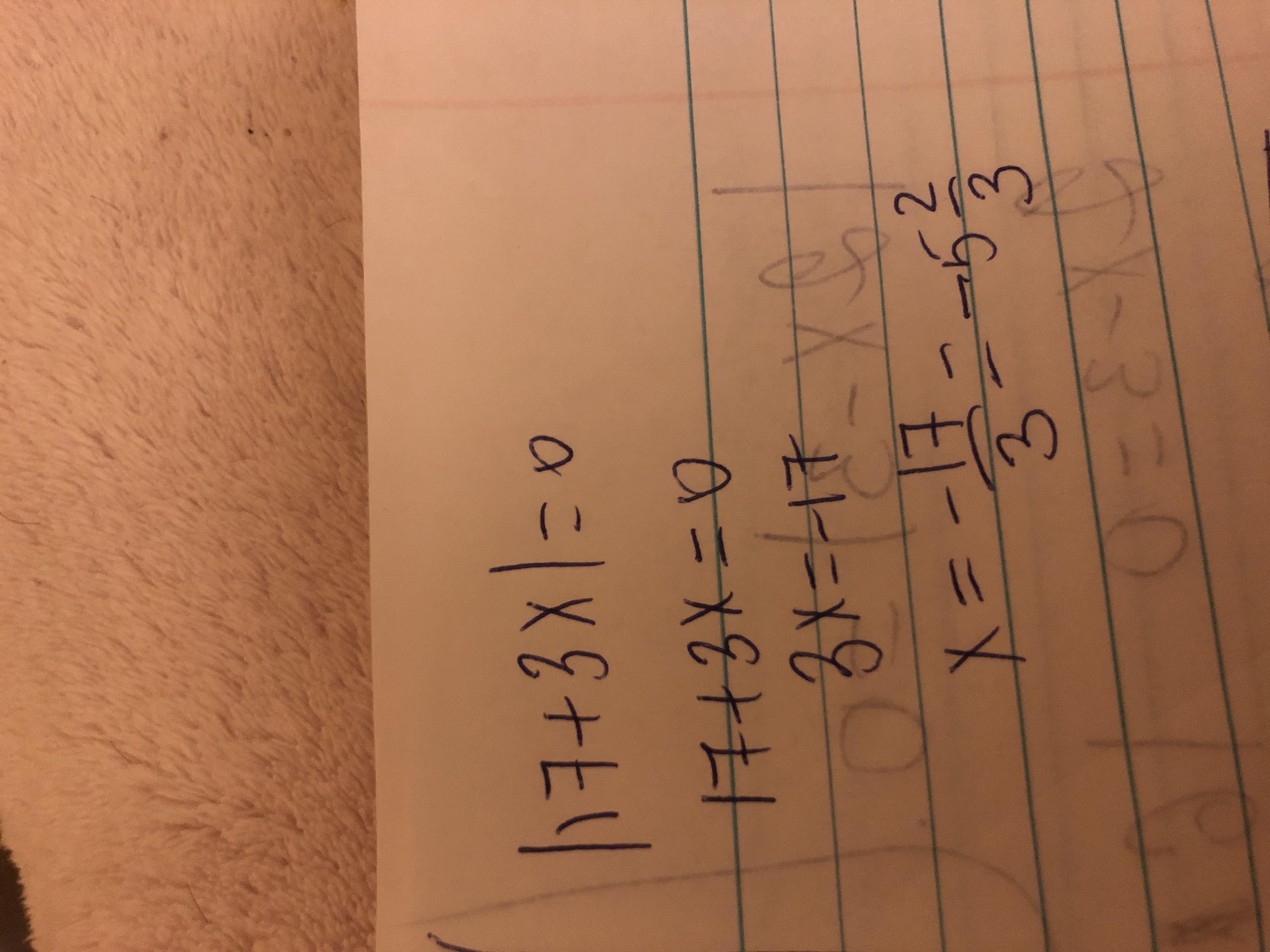 Когда абсолютное значение 17+3x равно 0, тогда 17+3x равно 0