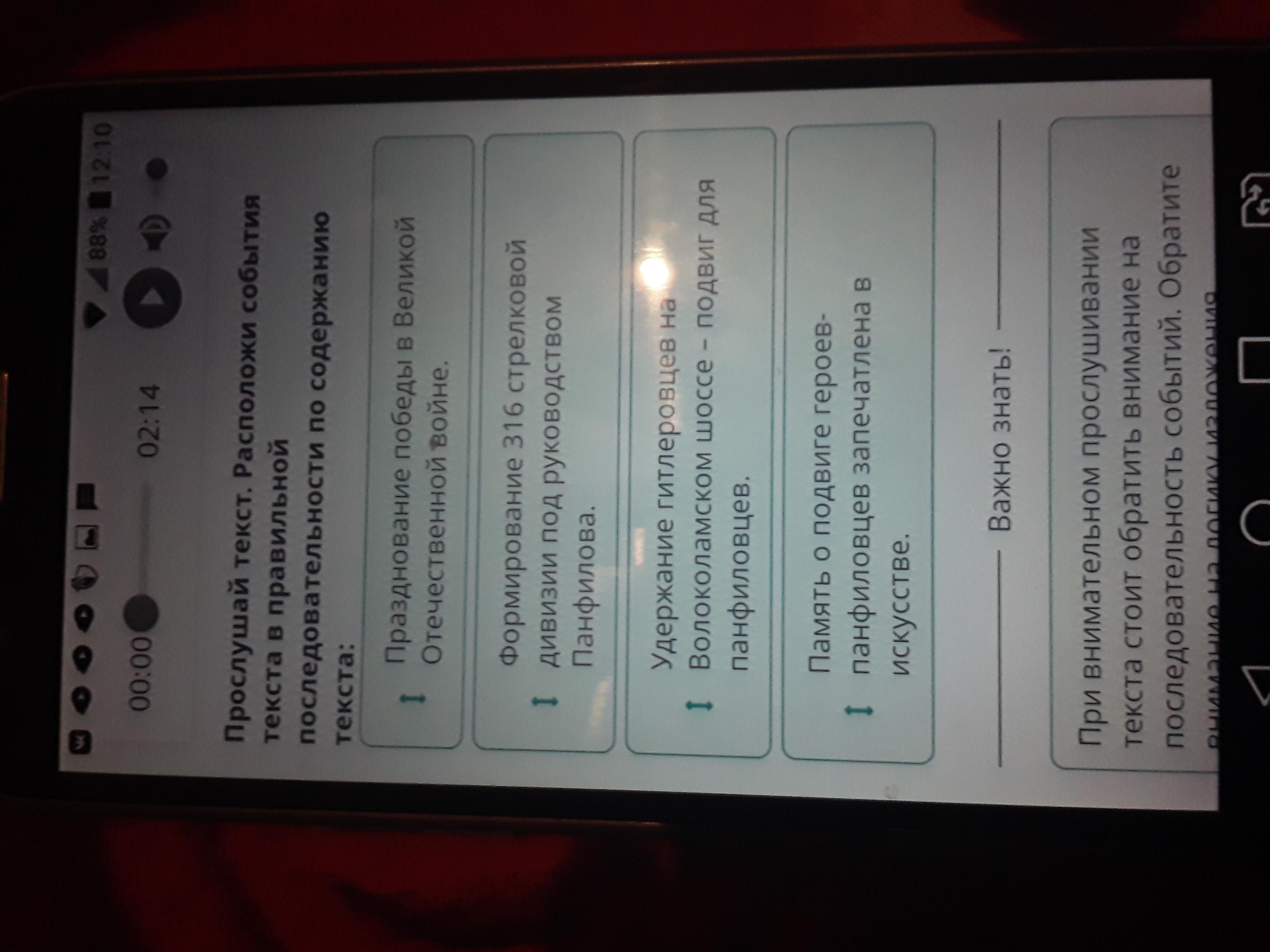 Прослушай текст. Расположи события текста в правильной последовательности по содержанию