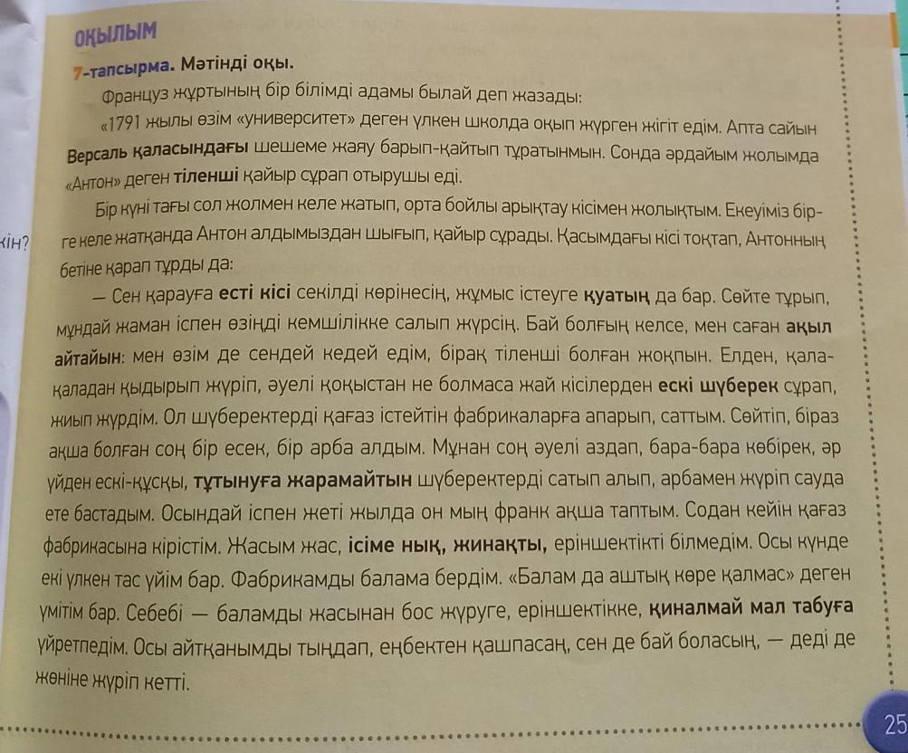 казахский язык помогите 7 т мәтінді оқы 1.Мәтіннің негізгі тақырыбы қандай? 2.Мәтіндегі негізгі идеяны аш?(1-2сөйлем)3.Мәтіндегі басты кейіпкер Антон қалай байлыкқа қол жеткізді?4.Қайыр сұраған кедей Антон мен бай болған Антонға салыстырмалы мінездеме жаса.