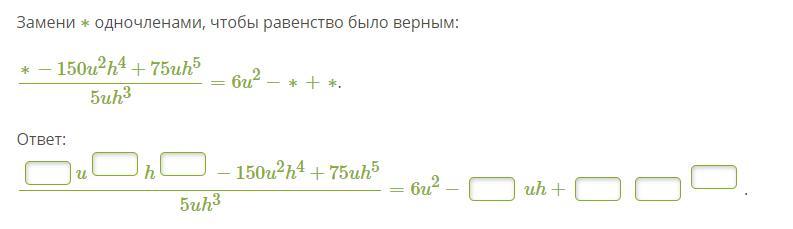 ( ? - 150u²h⁴ + 75uh⁵)/5uh³ = 6u² - ? + ?