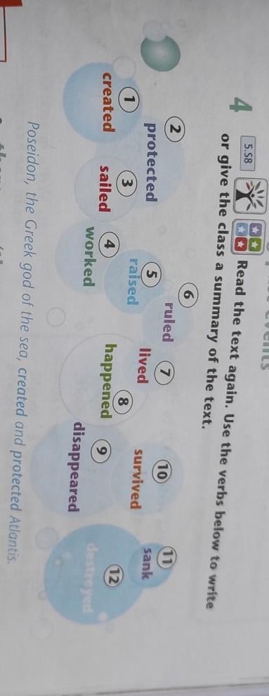 Ответ:The people sailed around the world and farmers worked in the fields.They also raised cows and sheep.The kinds who ruled the island lived in beautiful palaces.One day a great earth quake happened and the island disappeared.