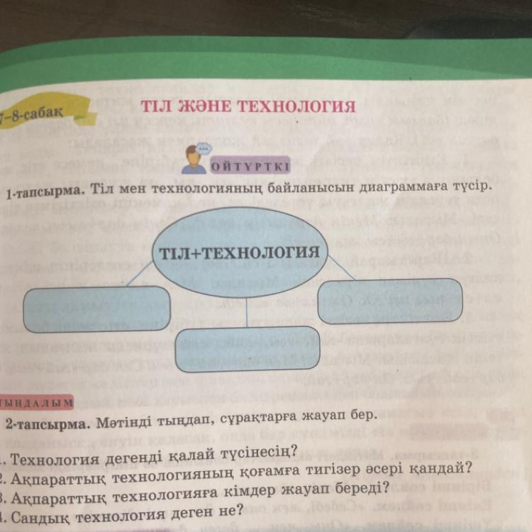 1-тапсырма. Тіл мен технологияның байланысын диаграммаға түсір.