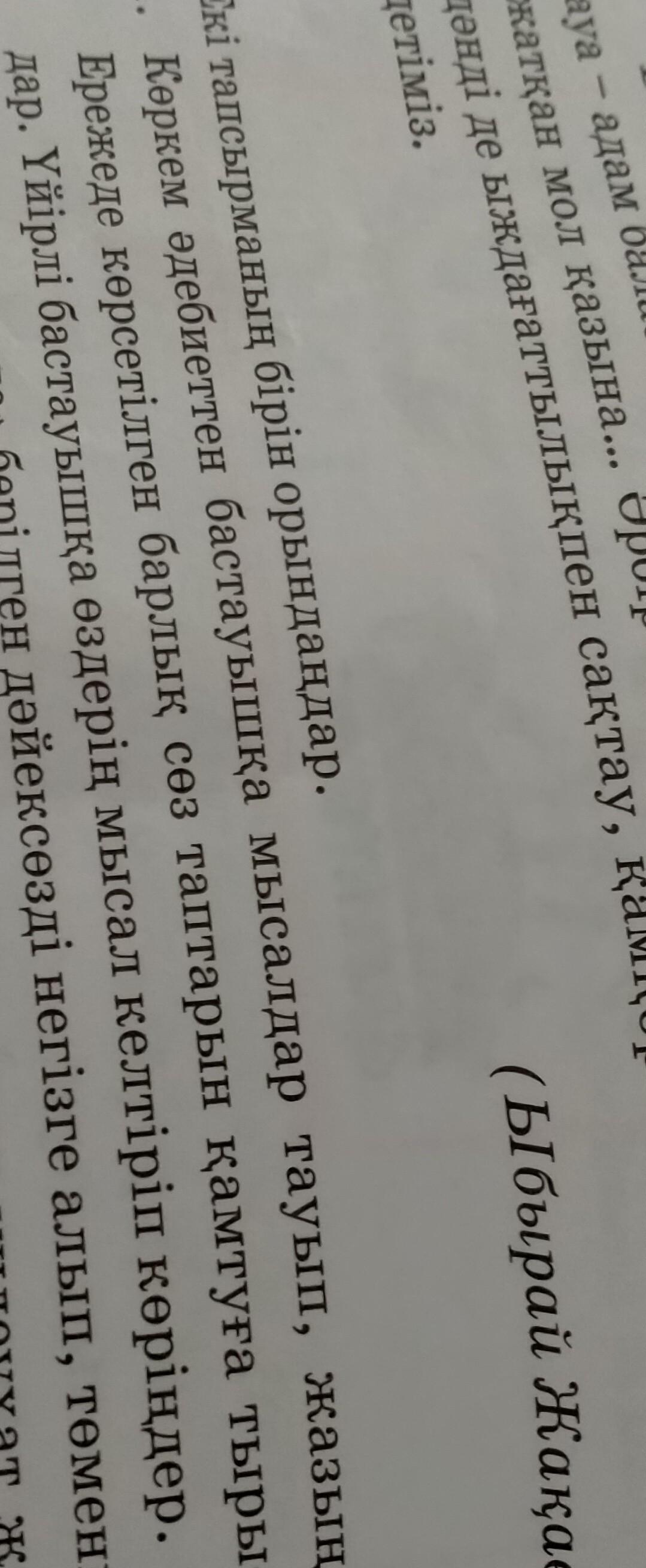 Көркем әдебиеттен бастауышқа мысалдар тауып,жазыңдар.Ережеде көрсетілген барлық сөз таптарын қамтуға тырысыңдар.Үйірлі бастауышқа өздерің мысал келтіріп көріңдер.