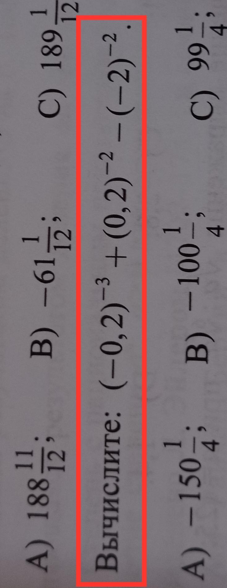 (-1/5)‐³ + (1/5)‐² -2‐² = (-5)³ + 5² - 1/2² = -125 + 25 - 1/4= -100 - 1/4= - 100 - 0,25= -100,25