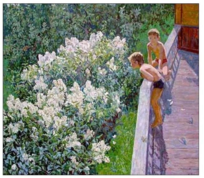 Раним летом Вася с Серёжей спали. Как вдруг в окно начало светить яркое солнце. Оба сразу же встали с кроватей и побежали на балкон. Вася с Серёжей увидели какая прекрасная погода. Долго они любовались красотой пока не проснулась мама и не позвала их на завтрак.