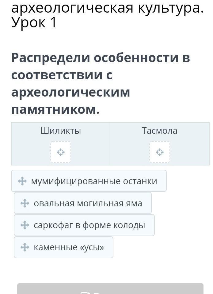 Объяснение:Тасмола-овальная могильная яма и каменные «усы». Я проверила!