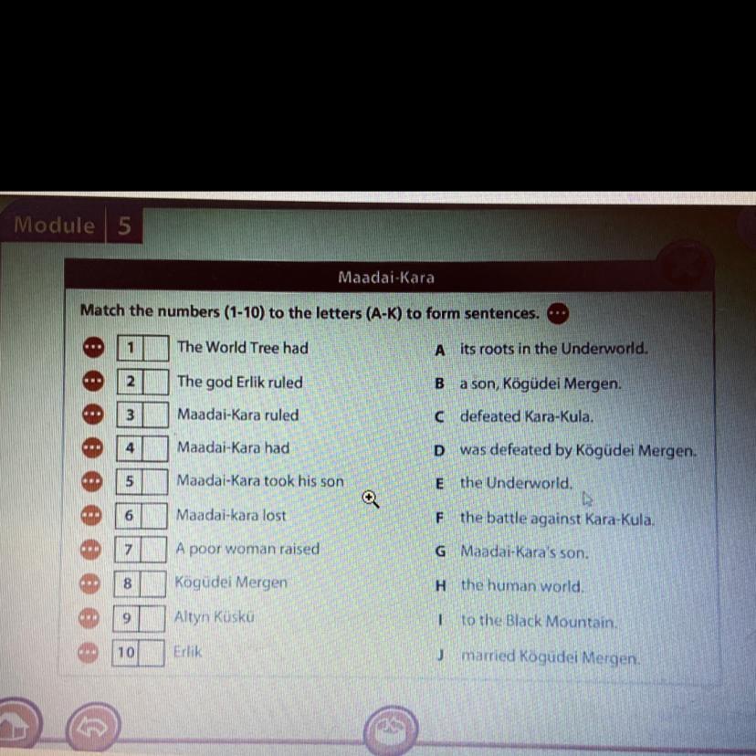 Match the numbers (1-10) to the letters (A-K) to form sentences.