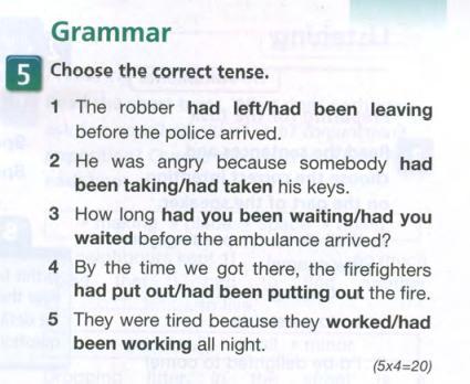 Ответ: 1. Had left, 2. Had taken, 3. Had you been waiting, 4. Had put out, 5. Had been working