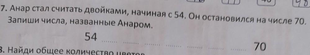 7. Анар стал считать двойками, начиная с 54. Он остановился на числе 70.
