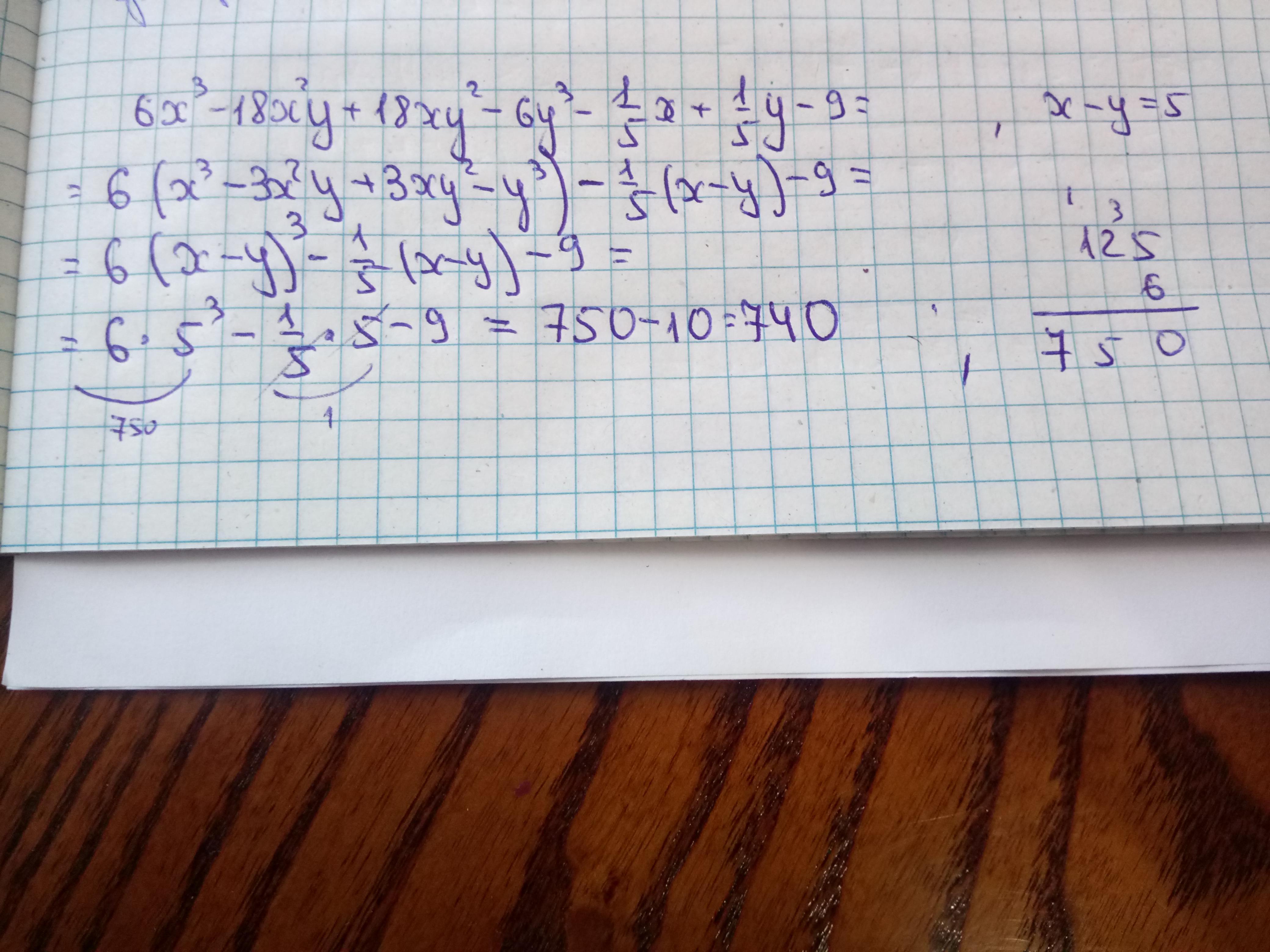 Найди значение выражения 6x3 – 18x2y + 18xy2 – 6y3 –