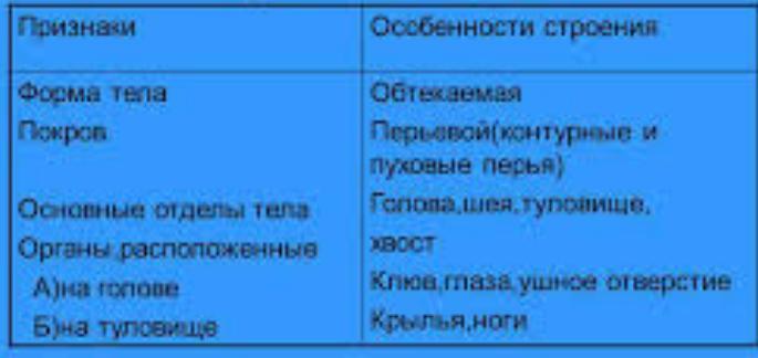 Ответ:1.Для птиц характерна обтекаемая форма тела.