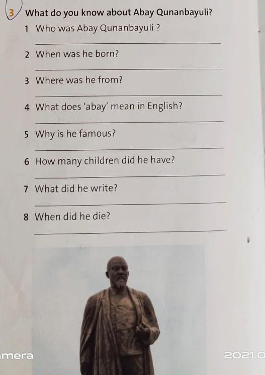 Ответ:1.Abay Kunanabayevich is a great poet. 2.He was born in 1845.