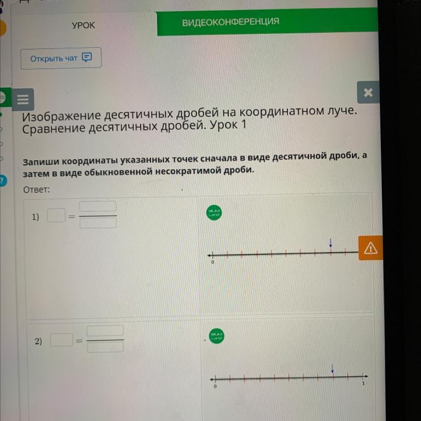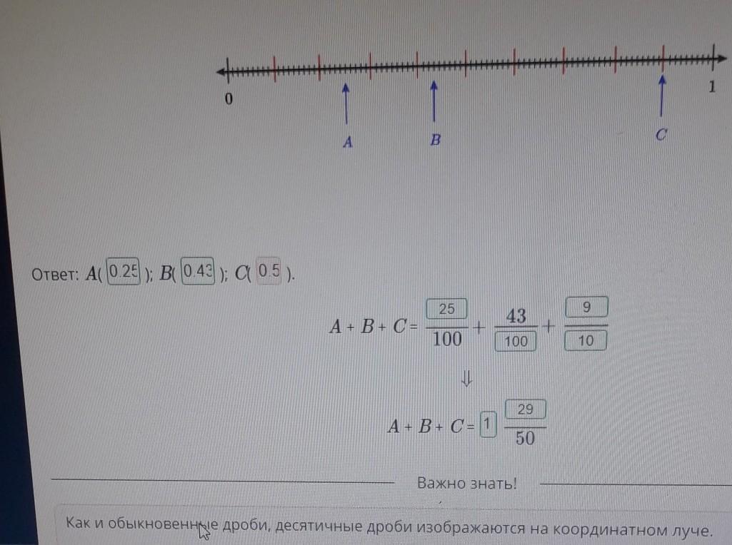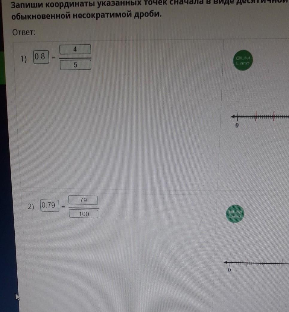 Запиши координаты указанных точек сначала в виде десятичной дроби, а
