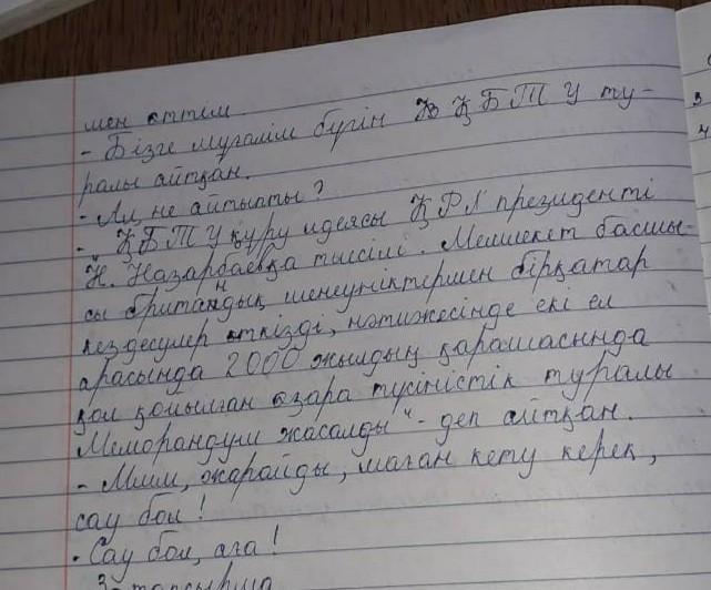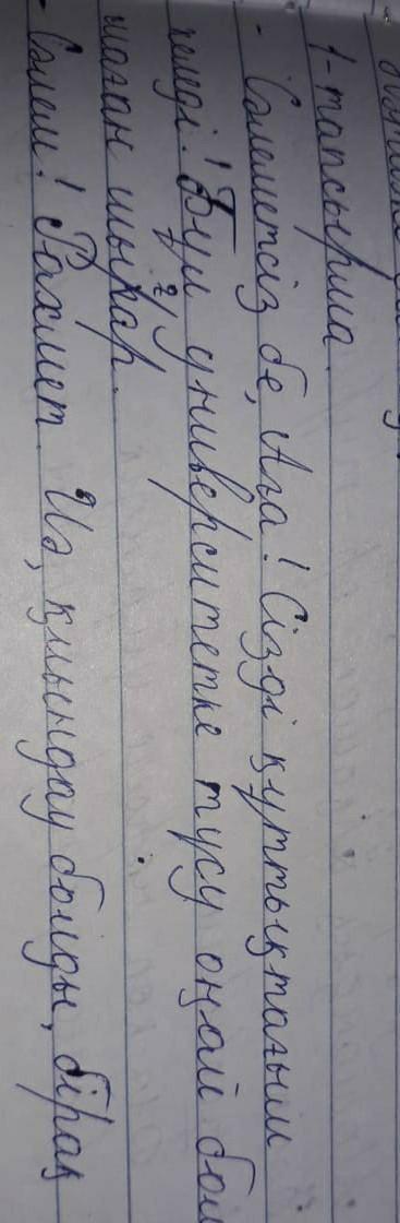 21 бет. 1-тапсырма. Рөлдік ойын. Ағаң Қазақстан-Британ техникалық университетіне оқуға түсті. Телефон шалып, ағаңды құттықта. Ол үшін ҚБТУдағы «газ және мұнай» мамандығы, болашағы, артықшылығы туралы ақпарат жина. Диалогте етістіктерді, есімдіктерді қолдан.