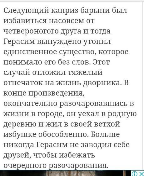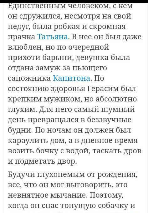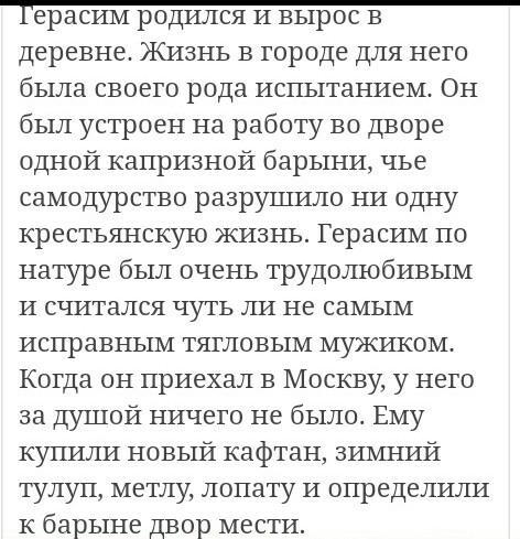 Нужно написать письменную работу в тетради на тему: "Жизнь Герасима у барыни" (объем 80-100 слов)