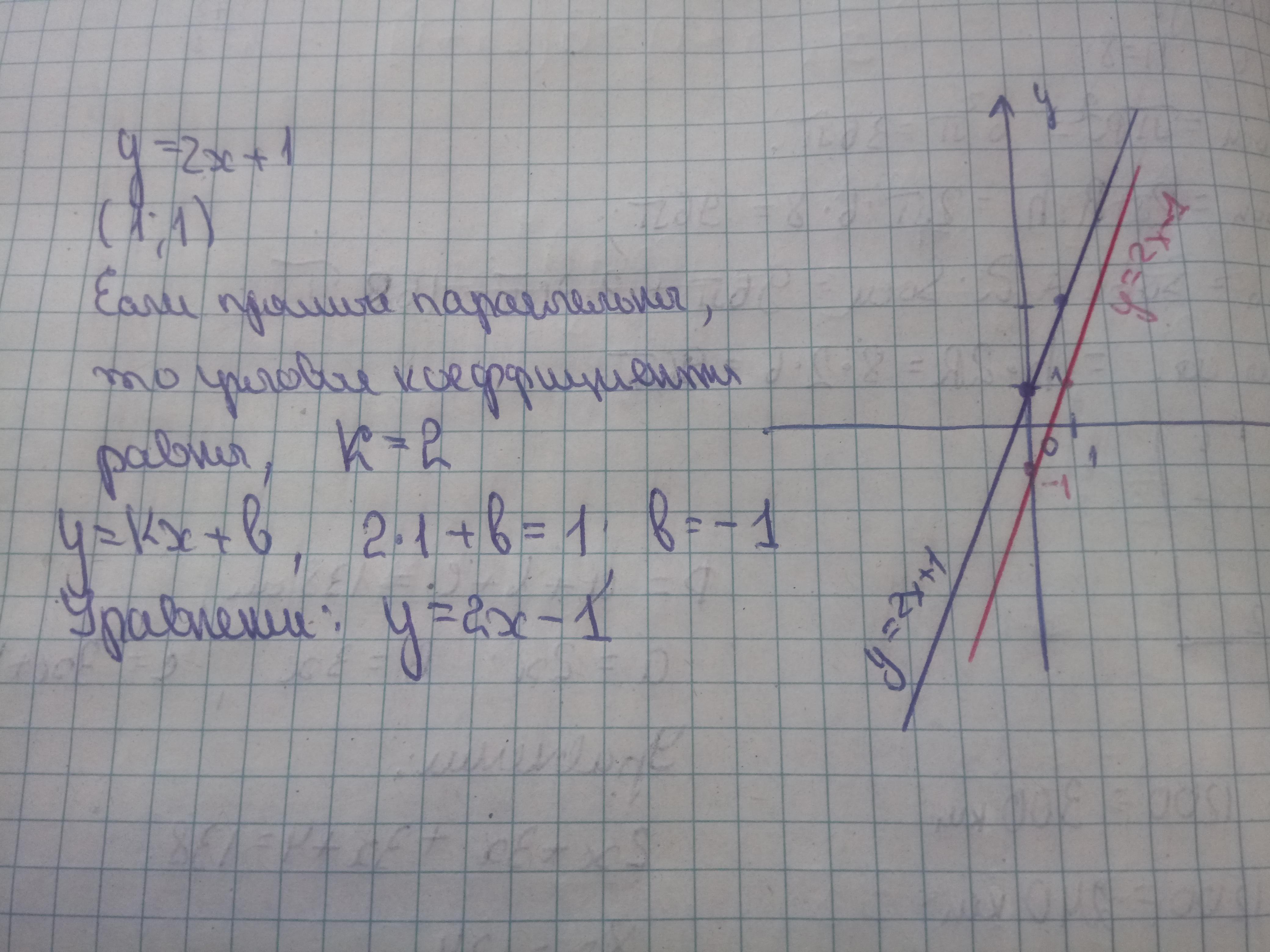 а) она параллельна прямой y = 2x + 1 и проходит через точку (1; 1). При необходимости используйте координатную плоскость! Объясни свои действия!