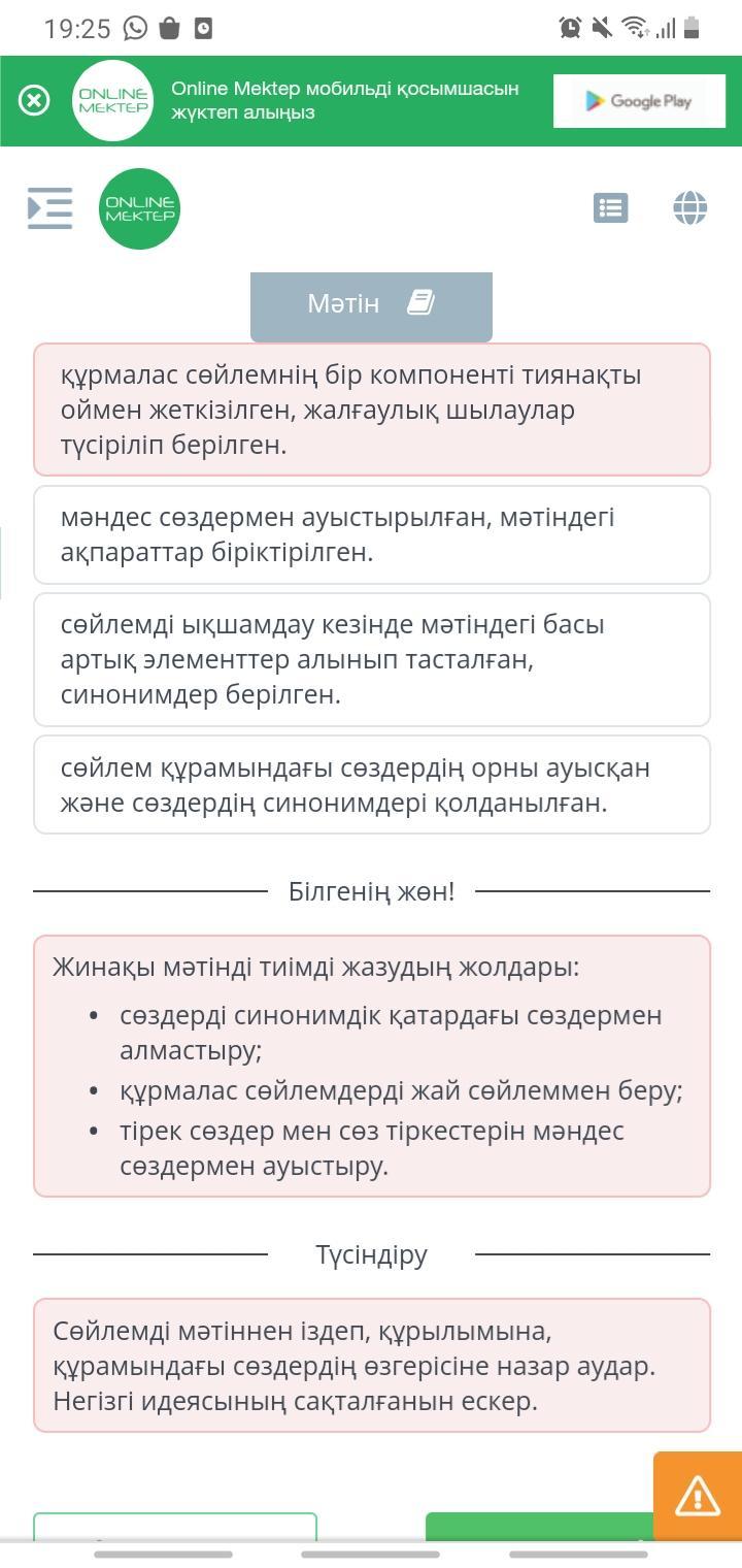 сөйлемді ықшамдау кезінде мәтіндегі басы артық элементтер алынып тасталған, синонимдер берілген.