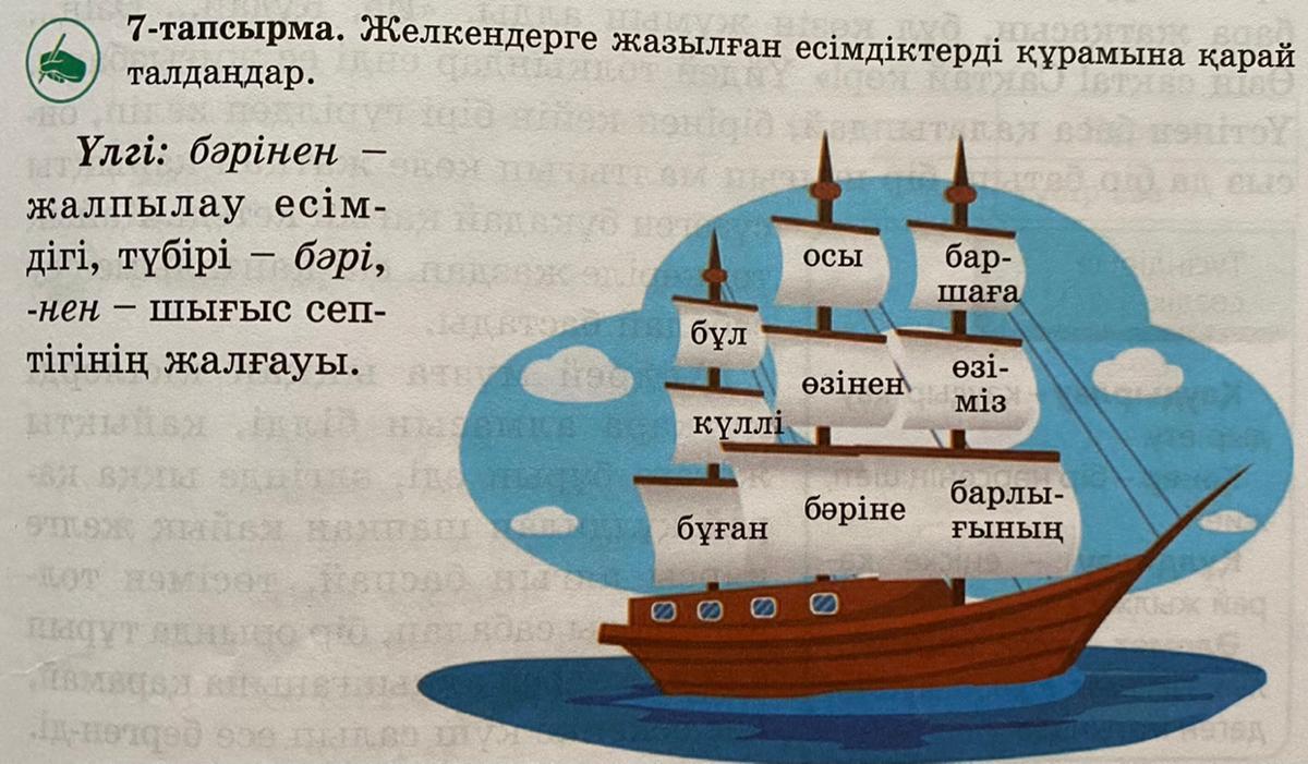 7-тапсырма. Желкендерге жазылған есімдіктерді құрамына қарай