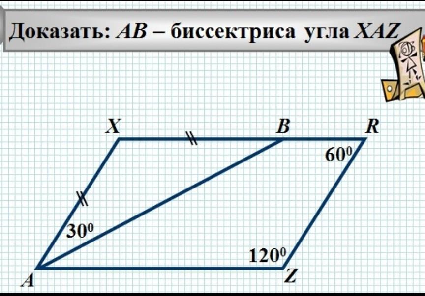 так как AB делит угол ∠XAZ пополам, AB - биссектриса