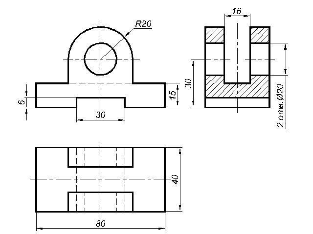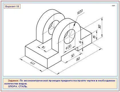 По аксонометрической проекции предмета постройте чертеж в необходимом количестве видов. Опора.Сталь. надо сделать разрез