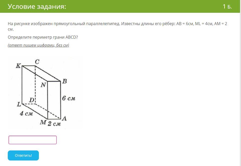 1) Р(ABCD) = 2•(6+4) = 20 см.