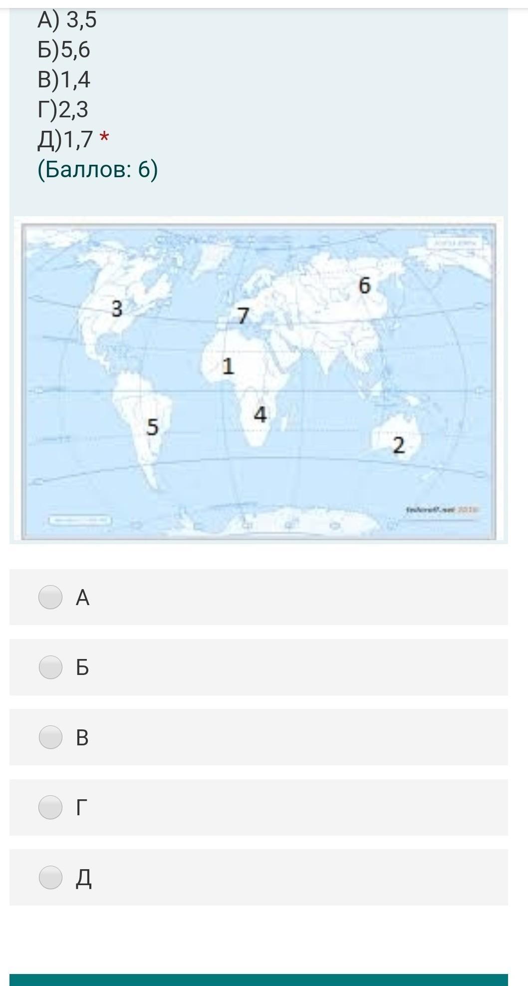 Население каких указанных на карте регионов сталкиваются с проблемой голода? А) 3,5 Б)5,6 В)1,4 Г)2,3 Д)1,7