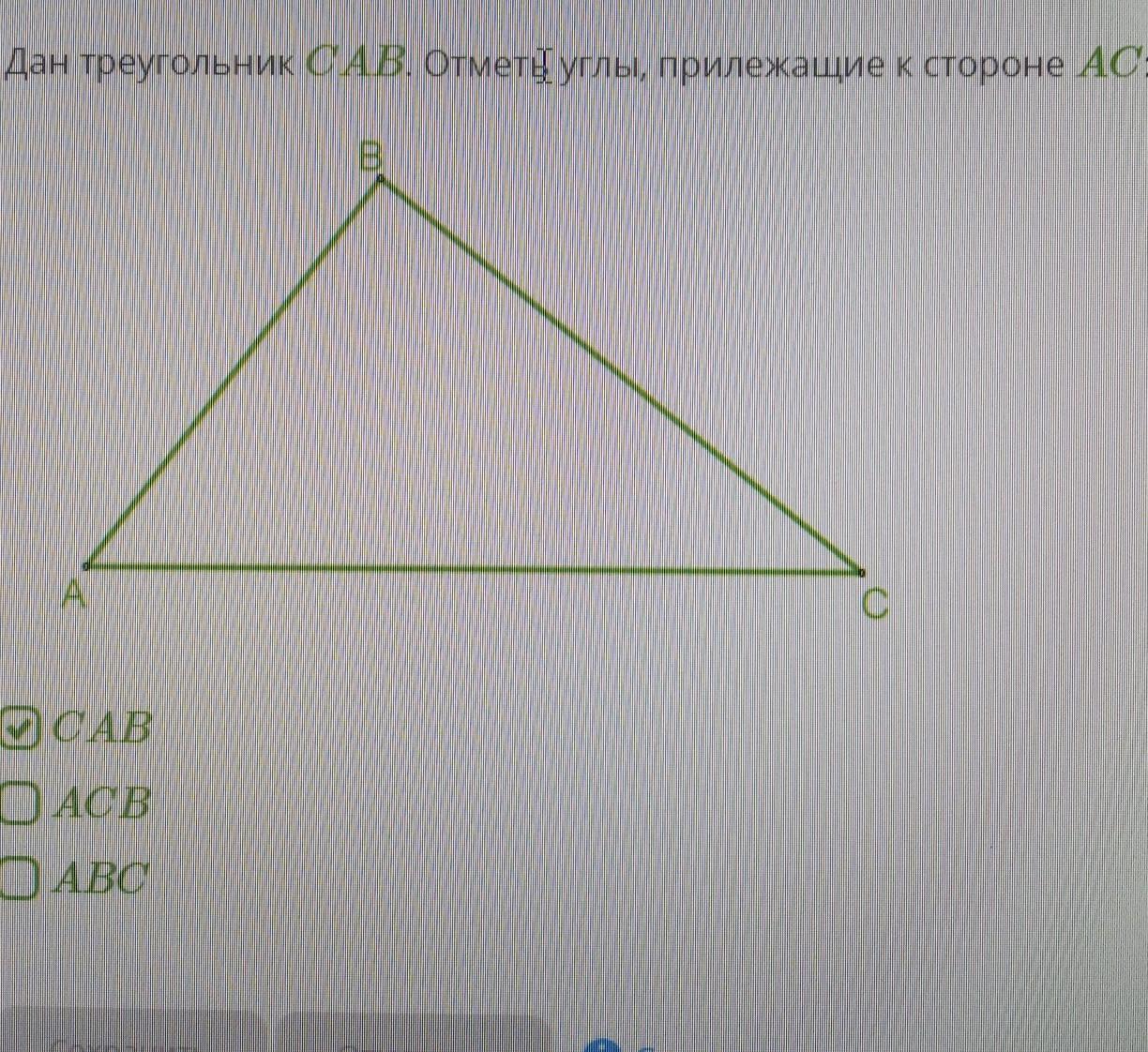 Нужно найти угол АСВ то есть это угол С а остальные точки А, В.