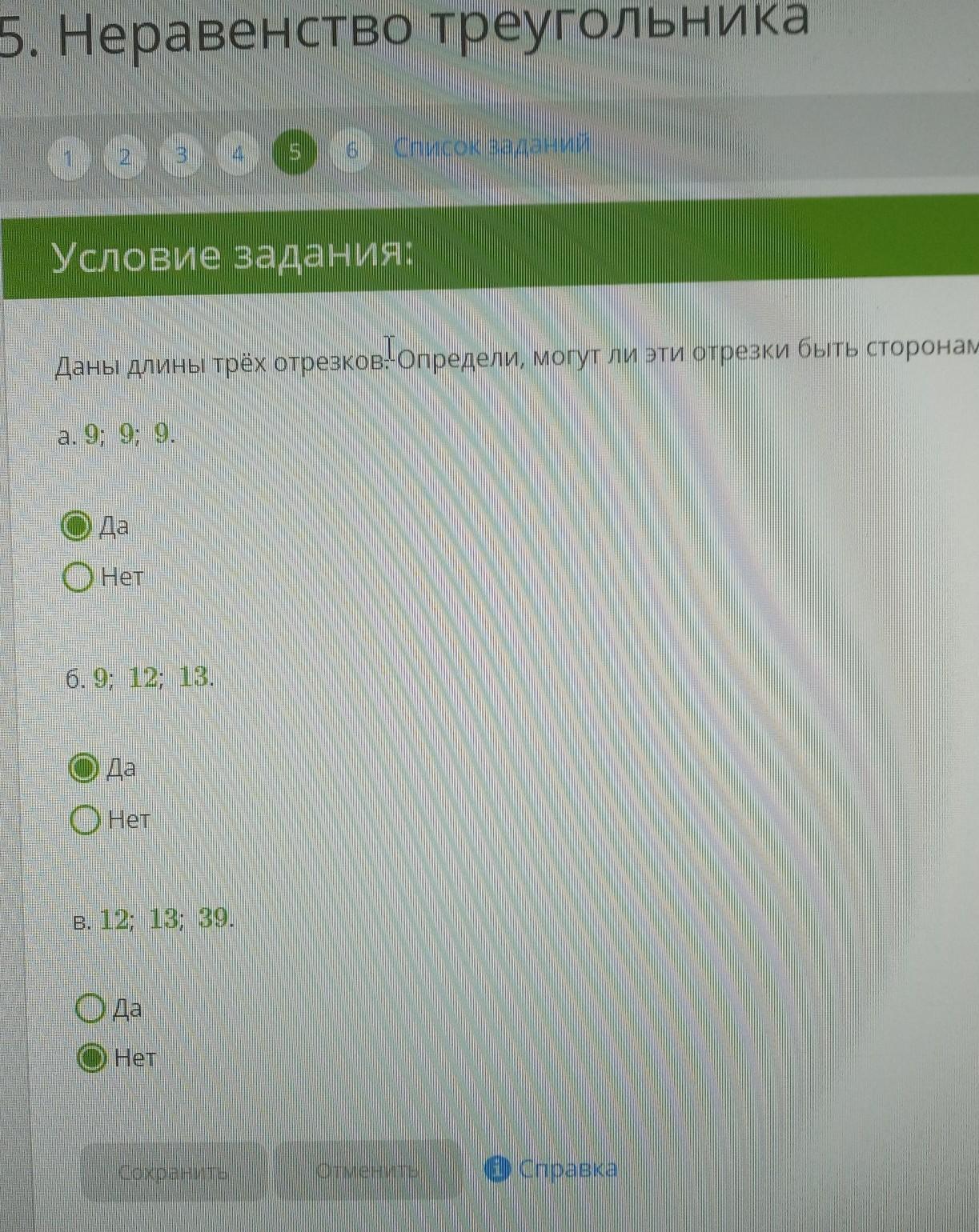Сумма любых двух сторон треугольника больше третьей стороны.