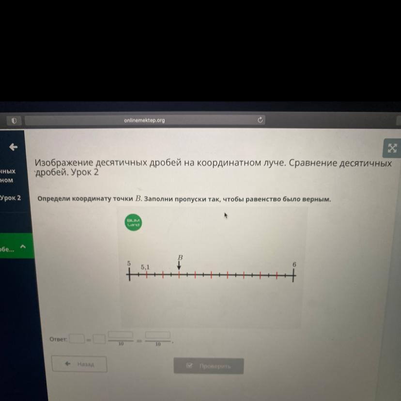 Как мы можем видеть на координатной прямой, первое число 5, второе 5,1, между ними два промежутка. Найдем цену деления: разность значений поделим на количество промежутков.