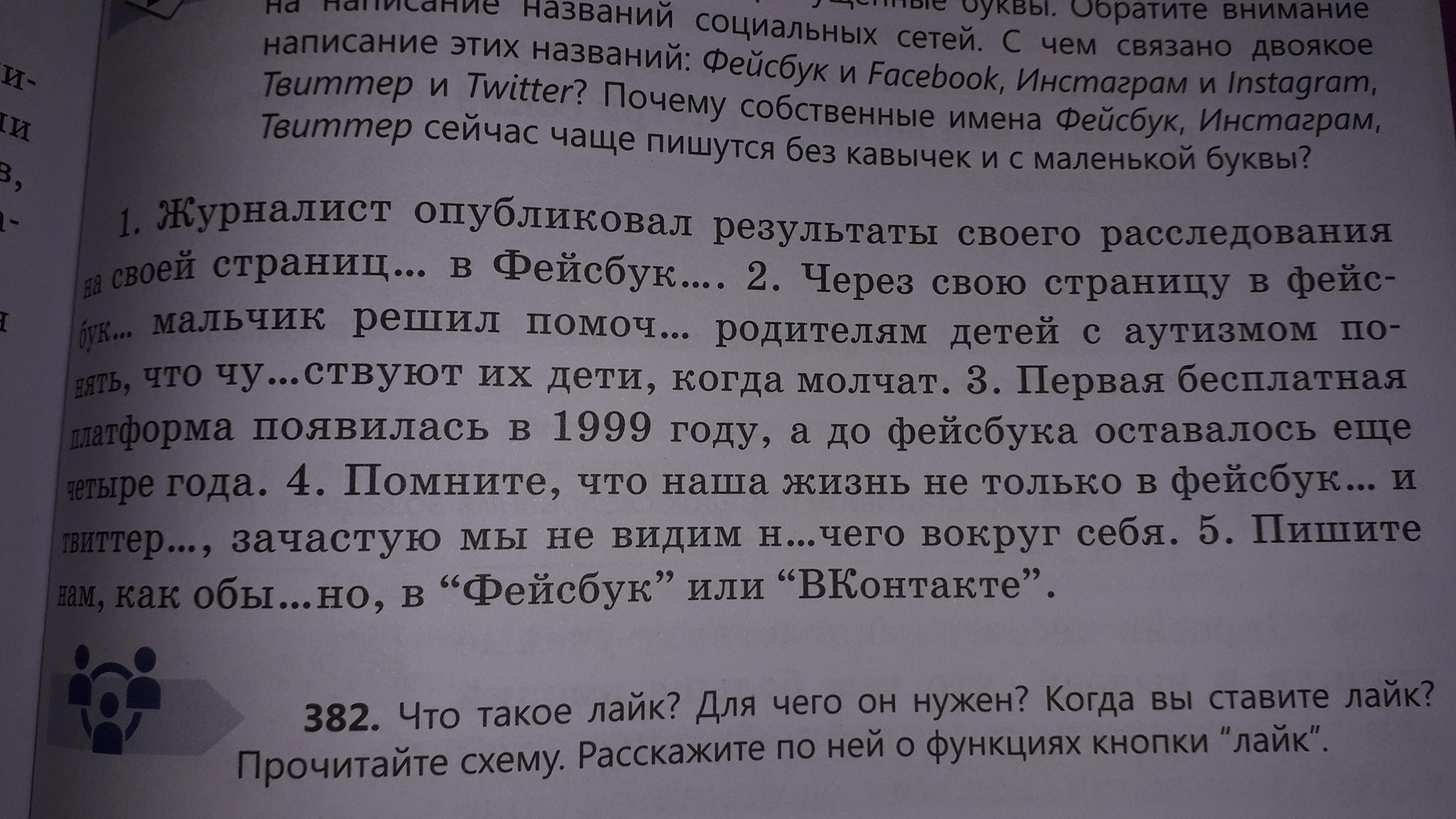 1.Журналист опубликовал(1 спряжение, изъявительное ) результаты своего расследования на своей странице в Фейсбуке 2.Через свою страницу в фейсбуке мальчик решил(1 спряжение. изъявительное) помочь родителям детей с аутизмом понять(1 спряжение изъявительное), что чувствуют(1 спряжение, изъявительное) их дети, когда молчат(2 спряжение, изъявительное). Первая бесплатная платформа появилась(1 спряжение, изъявит. накл) в 1999 году, а до фейсбука оставалась (1 спряжение, изъявительное) еще четыре года. 4.Помните(повелительное накл. 2 спряжение), что наша жизнь не только в фейсбуке и твиттере, зачастую мы не видим(2 спр, изъявительное) ничего вокруг себя. 5.Пишите(2 спр, повелит накл) нам, как обычно в фейсбук или в вк