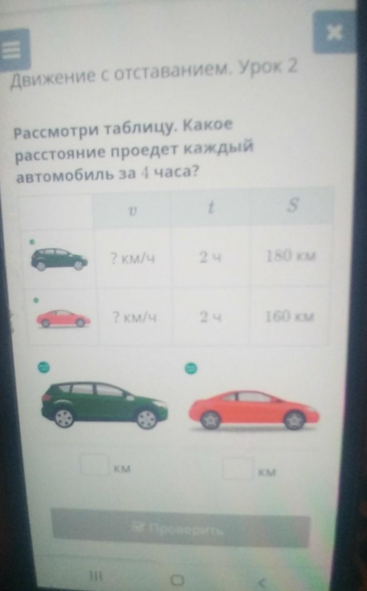 Рассмотри таблицу.Какое расстояние проедет каждый автомобиль за 4 часа?Помогите срочно